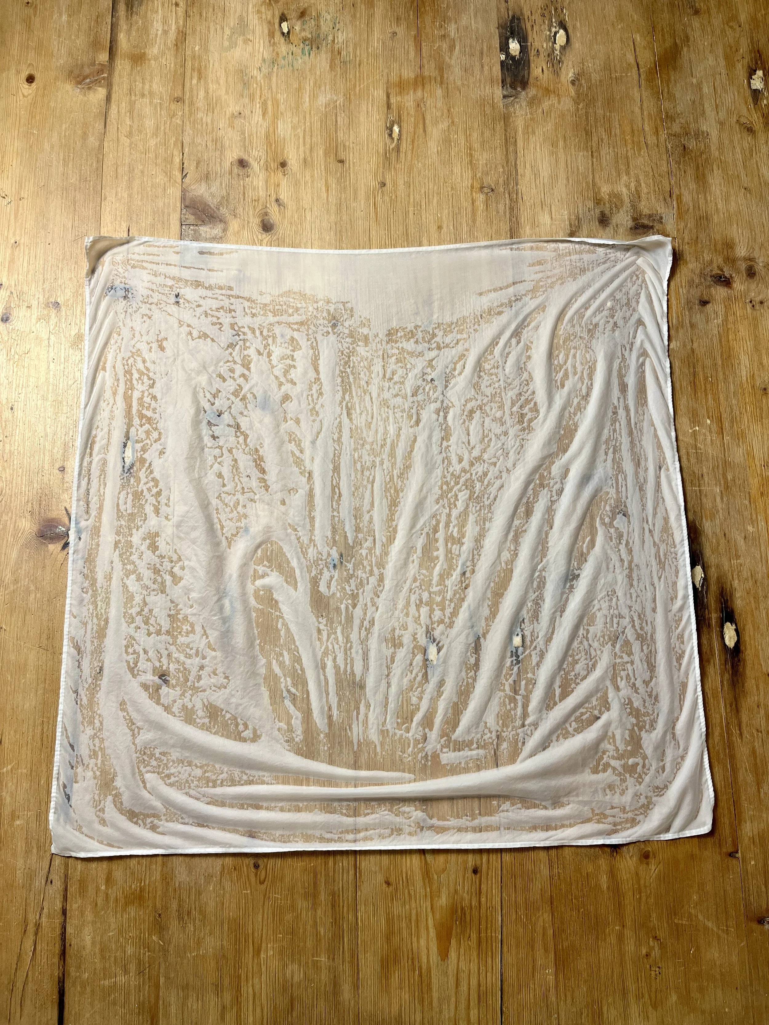 Once your steaming is finished, let the scarf cool off for a few minutes. I like to take it outside to unravel it so the spent flower bits go back to the earth. I recommend letting the scarf air dry out of sunlight for a couple of days. Refer to the yellow care sheet for instructions on washing + ironing. Some dye will rinse off in the initial rinse and that’s okay, it’s just extra that did not adhere to the scarf.