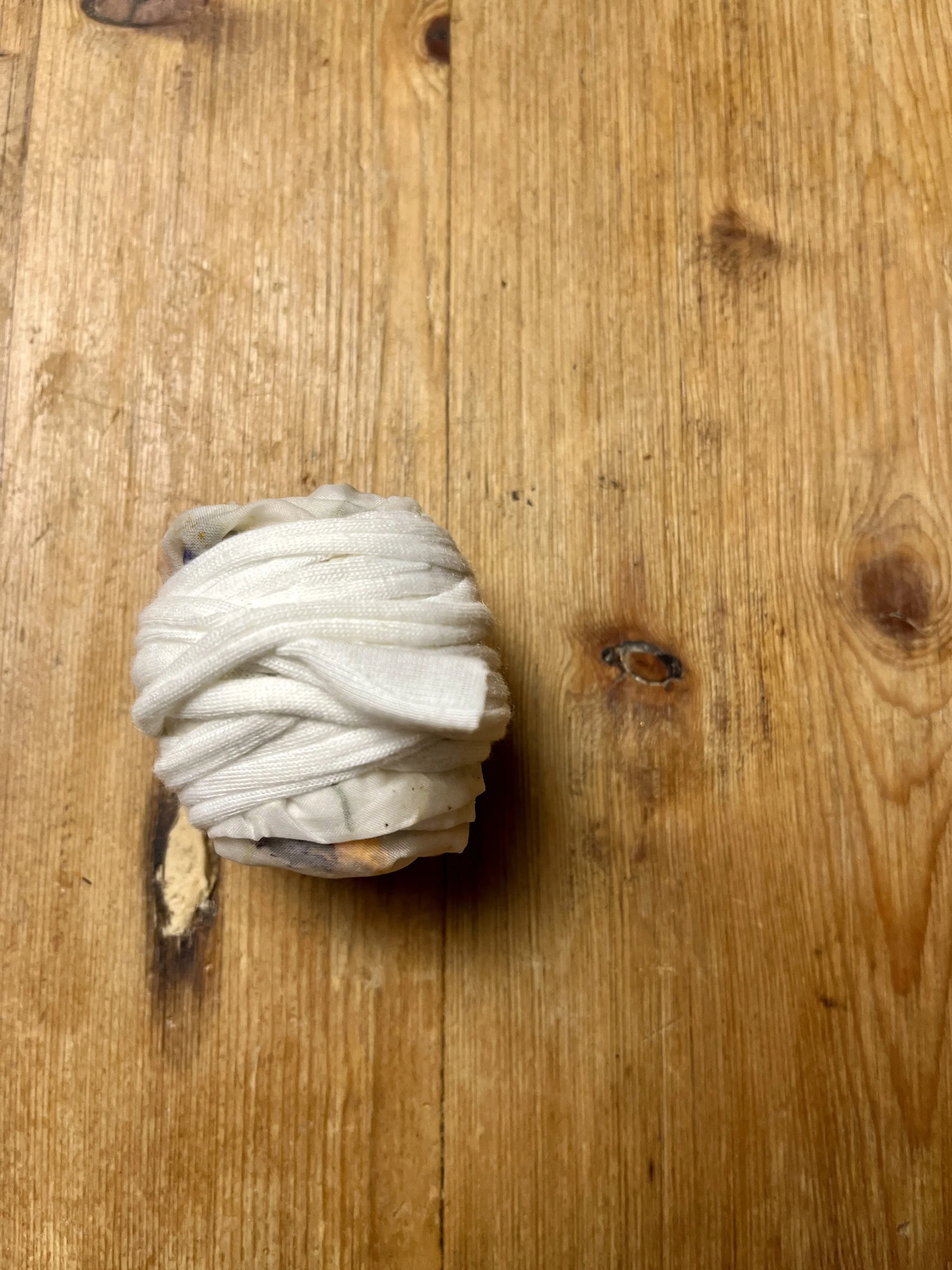 Starting from one end, roll the (already rolled up) silk again the other way until it looks like a nice little spiral bundle. Secure it tightly all around with the string provided.